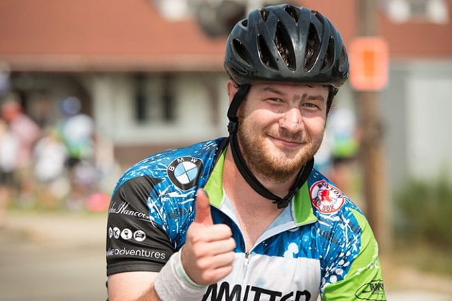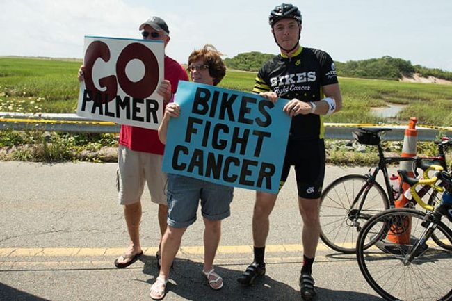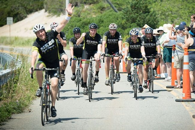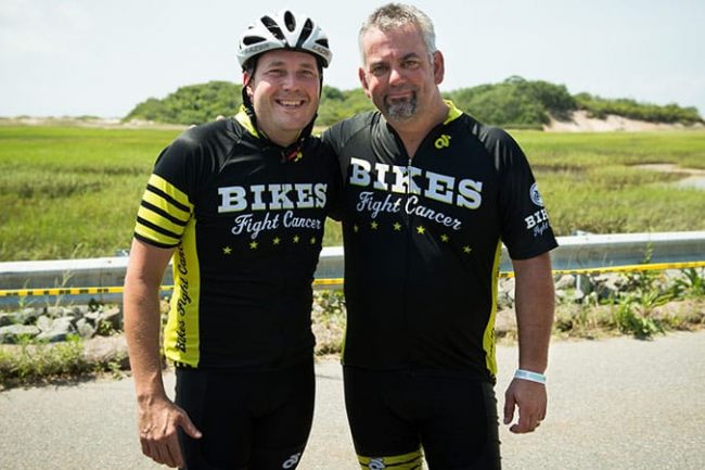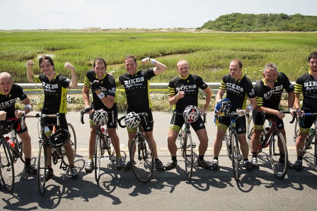 We’ve got eight riders our newly renamed Bikes Fight Cancer team this year! Welcome new comers: Will Bangs and James Sutter! We dedicated the ride to our pal, Kevin Bouvier, who was recently diagnosed with cancer but is THANKFULLY getting the treatment he needs and was able to join us at the start line in Sturbridge for some photos.