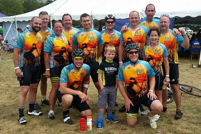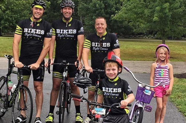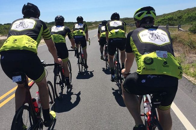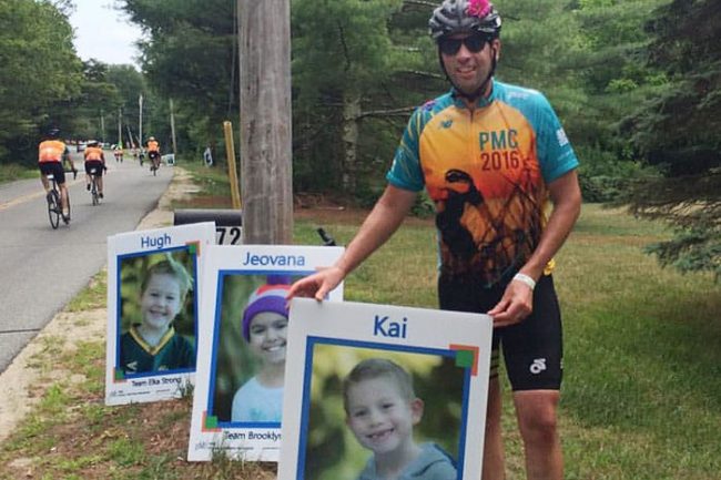 2016 was a busy year. We welcomed new teammates who were friends-of-friends (Chris, Alex, Alex, Mara, Don, Stephen, and Greg) and built our small army up to 13 people. We stuffed envelopes, sent emails, sold t-shirts, and pedaled thousands of miles together to get ready for the Pan-Mass Challenge. We signed up for the Pedal Partner Program and were matched up with a great, inspiring, and rambunctious six-year-old boy named Kai. Kai was diagnosed with Acute Lymphocytic Leukemia when he was 5 years old, but he his thankfully in full remission and treated us to a bike race around his neighborhood when we visited him one rainy morning in July. He won that bike race and clearly reminded us why Dana-Farber is so important.