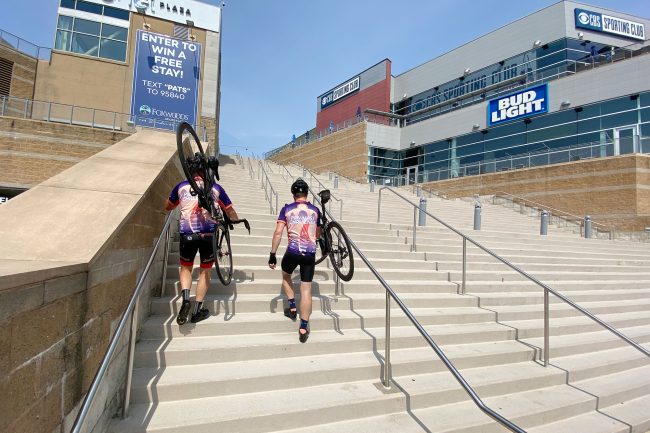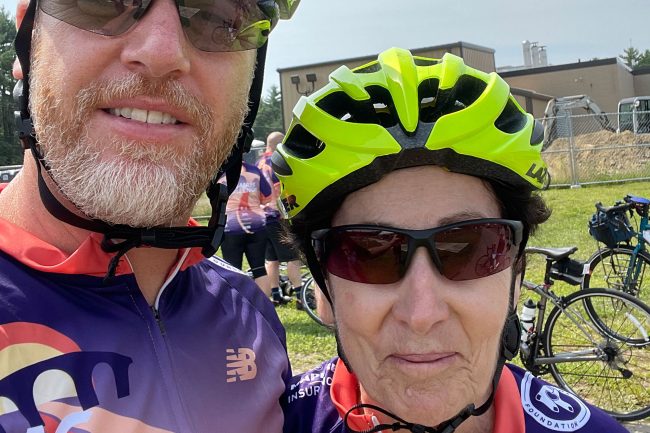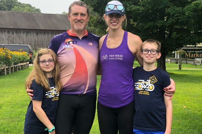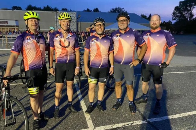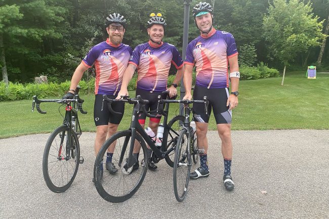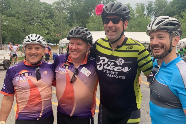 Another odd-ball year! Any optimistic thought of getting back to a “normal” PMC was quickly diminished early in the year as covid continued to surge. The PMC did announce the route from Sturbridge to Provincetown would be open however there would be no opening ceremonies, no large group start time, no lodging at the Mass Maritime Academy, and the water stops would be greatly minimized. We were still committed to keeping our team going but each individual teammate would need to decide how best to participate in the PMC weekend for themselves. We all went separate ways — some took the traditional route out to the Cape, some headed to Wellsely, and some “reimagined” their own PMC routes from home — but we all kept in touch via text as best we could!